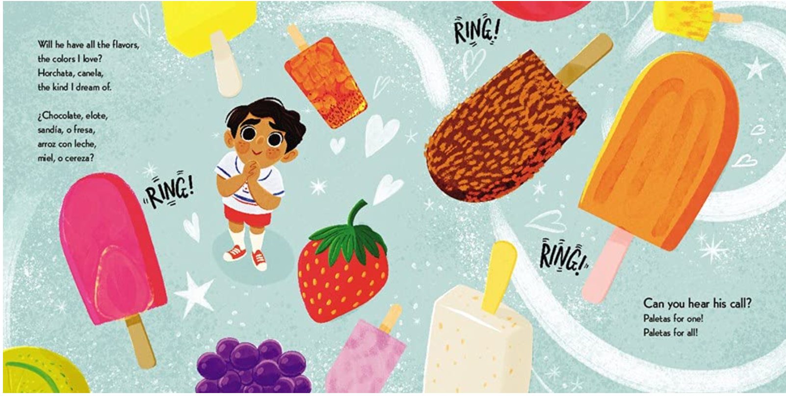 Ring! Ring! Ring! Can you hear his call? Paletas for one! Paletas for all!
