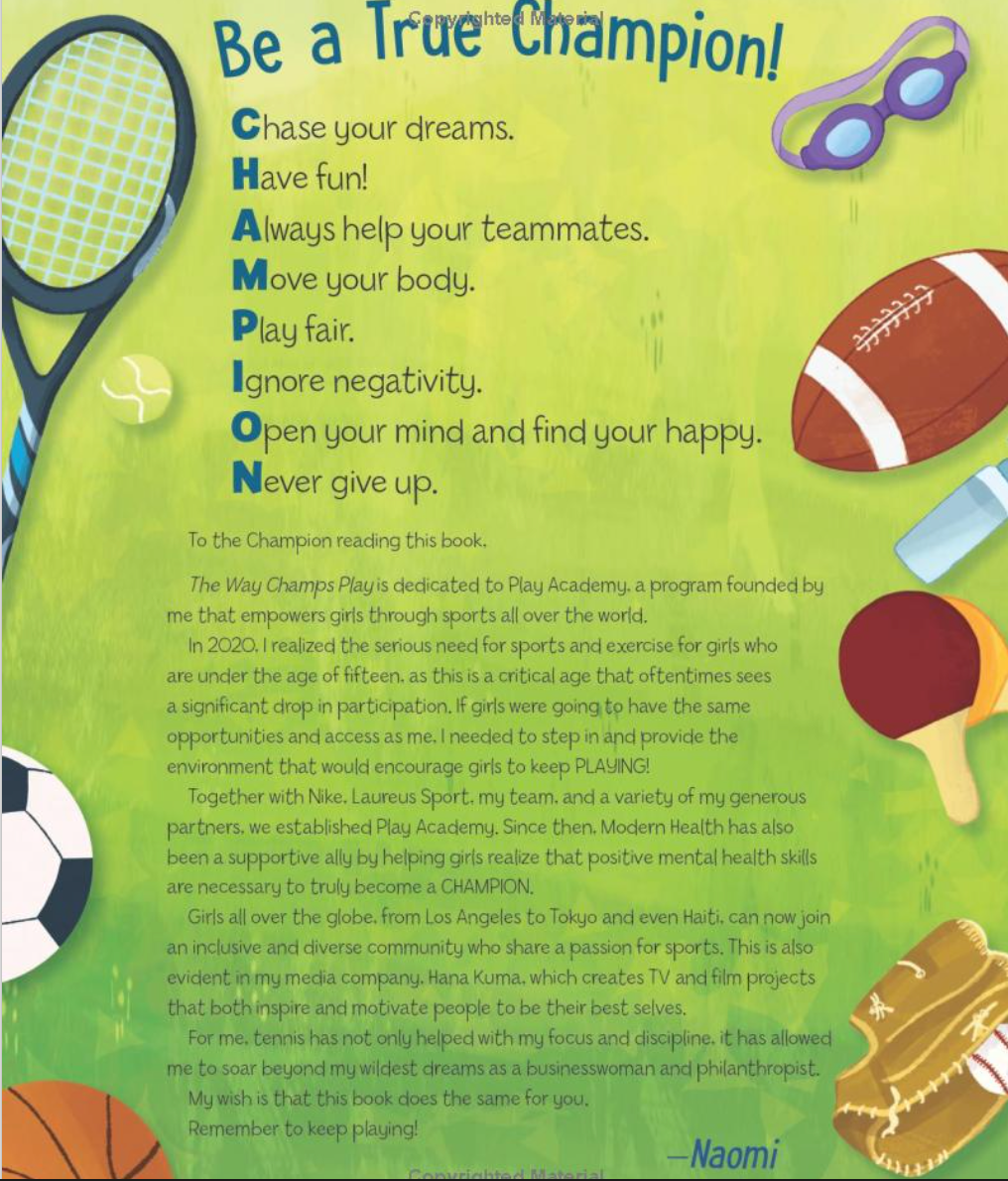 Inspired by Osaka’s game-changing program Play Academy, which instills confidence in and provides resources to young girls through sports, The Way Champs Play is an exciting and inspiring anthem for all kids in and out of the classroom who want to PLAY ALL DAY!